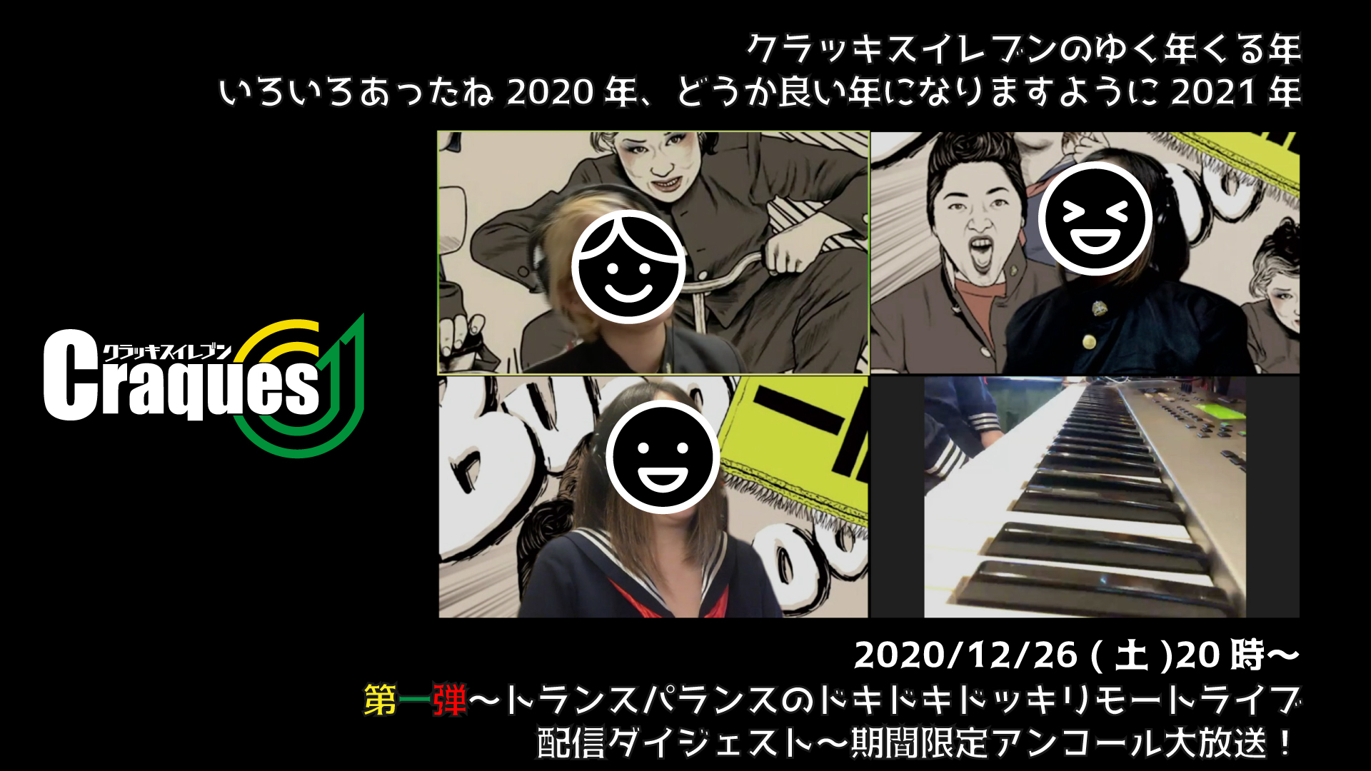クラッキスイレブンのゆく年くる年『いろいろあったね2020年、どうか良い年になりますように2021年』第一弾~トランスパランスのドキドキドッキリモートライブ配信ダイジェスト〜期間限定アンコール大放送!~ |